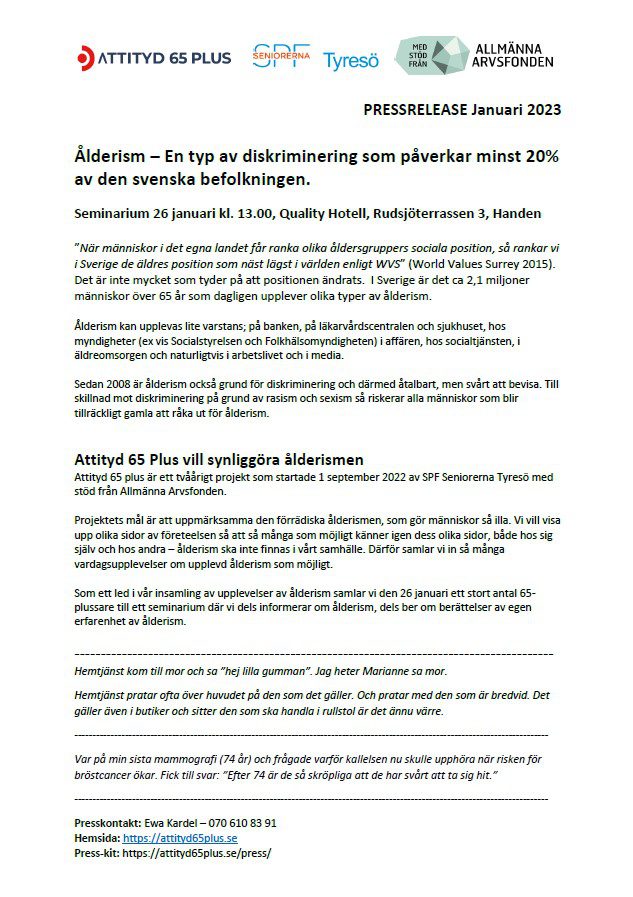 Det här är pressavdelningen för Attityd 65 Plus. Här samlar vi pressreleaser och material till press/media.